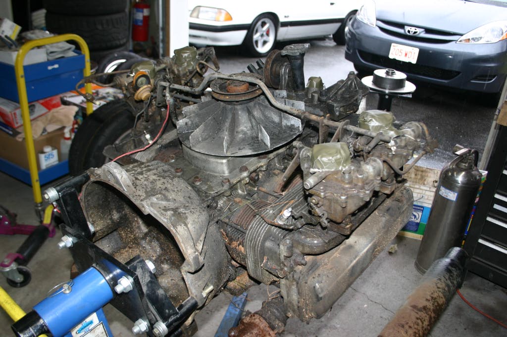About this time, I was able to find a complete 1965 Corvair 140 in Western Massachusetts. After a two hour drive I was able to pickup this engine for the paltry sum of $5! It was seized, but very valuable in parts alone.