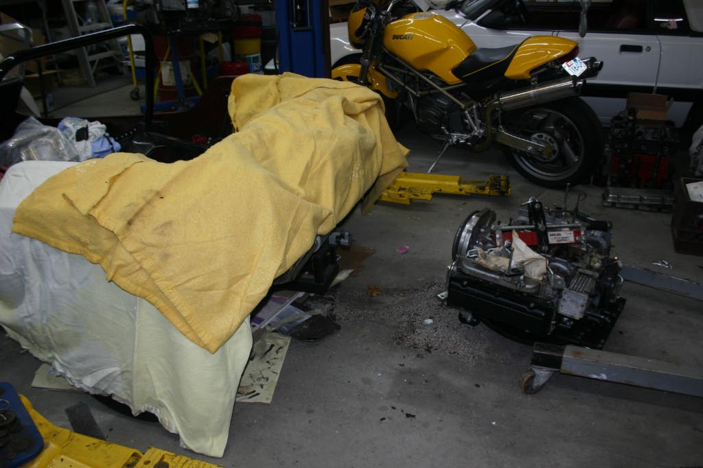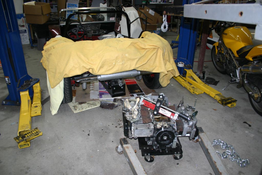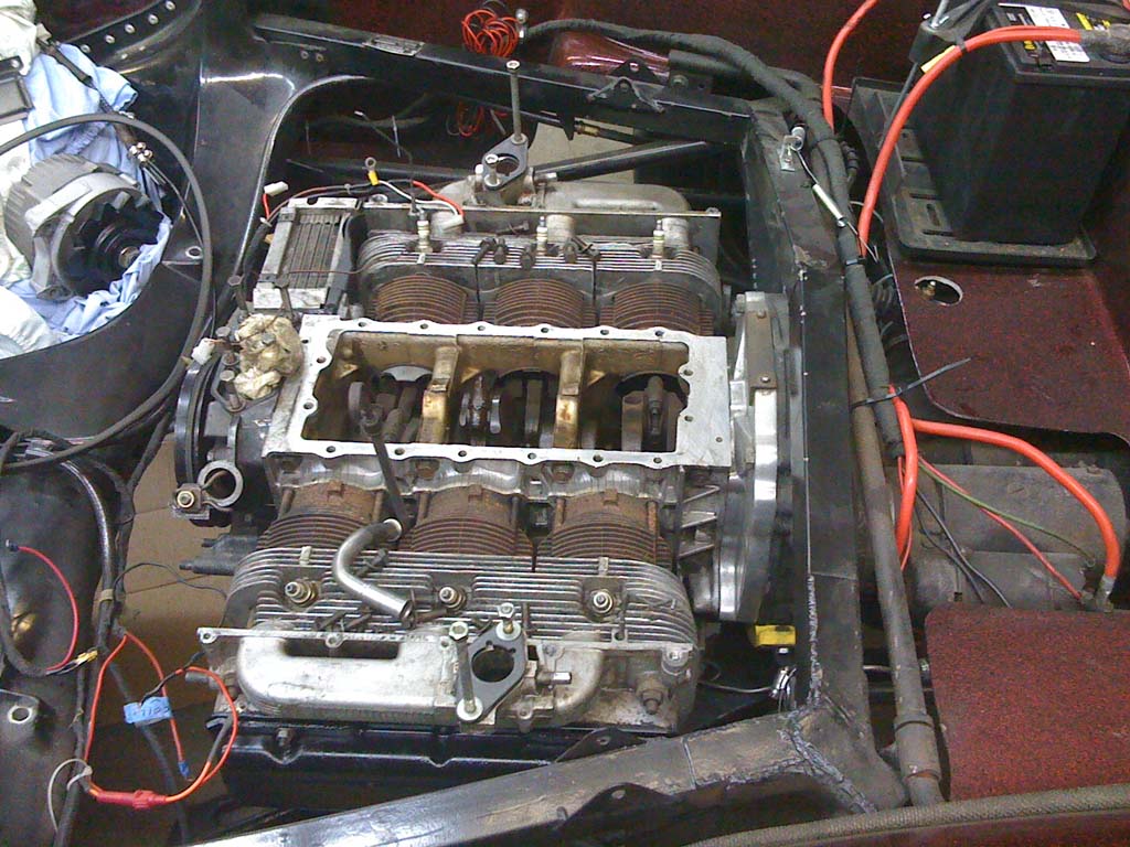 Mock up engine in the GS. You can see the machine work that was done to the heads.
