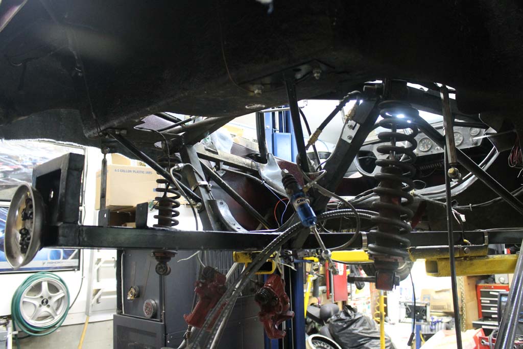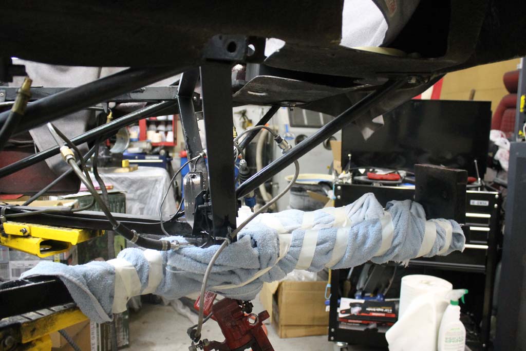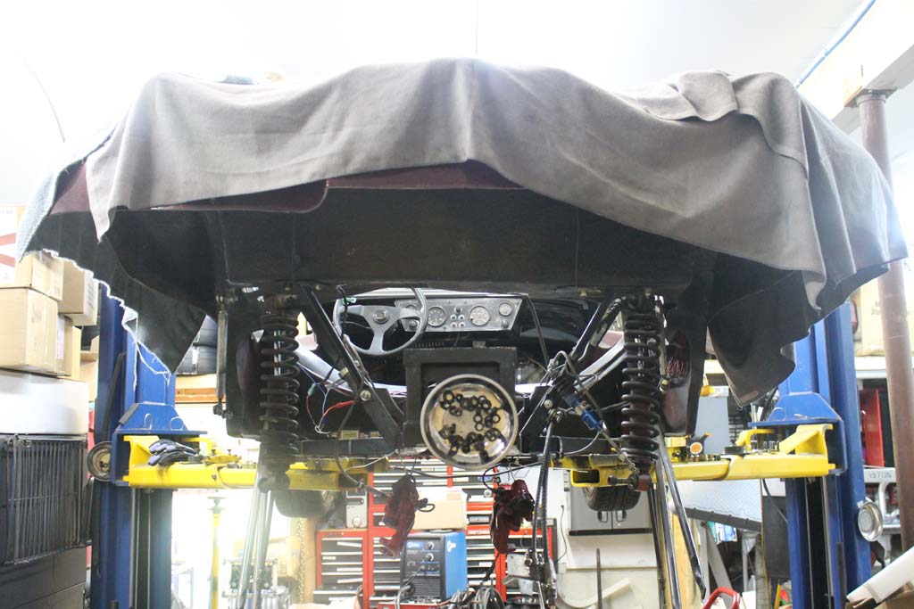 Here is the back of the car with the engine and transaxle out.