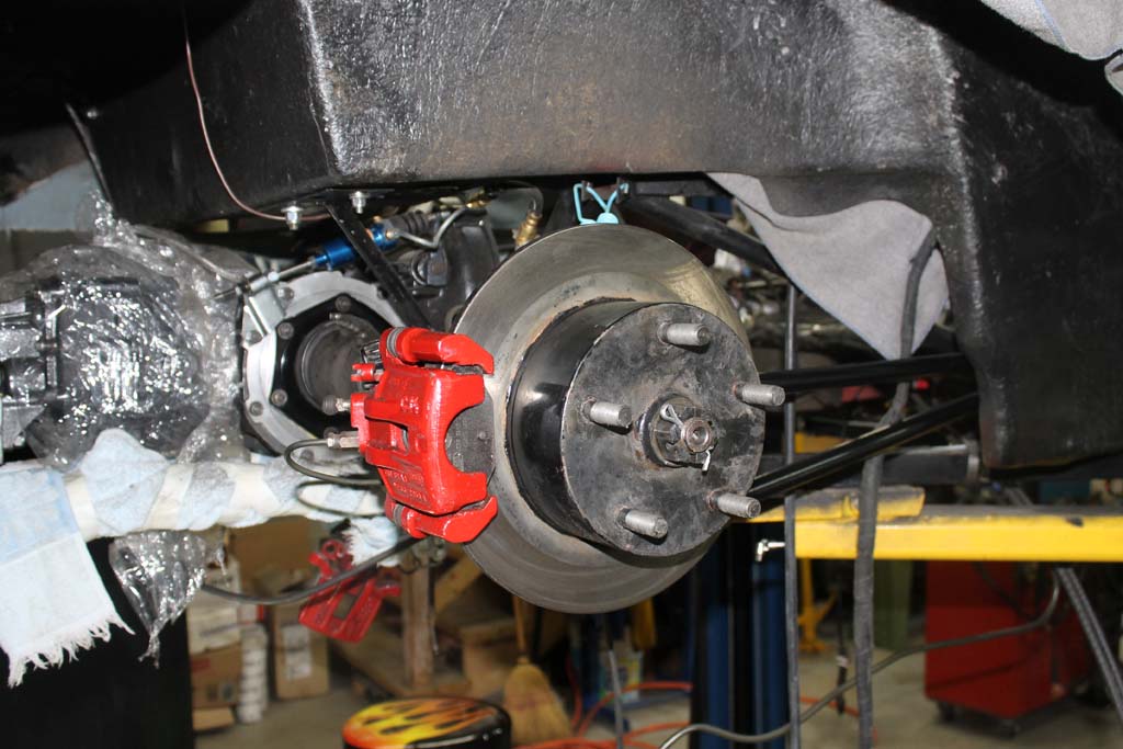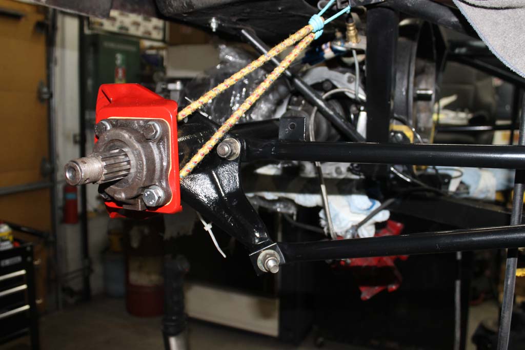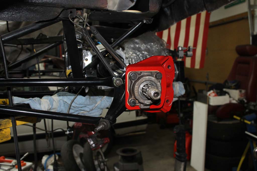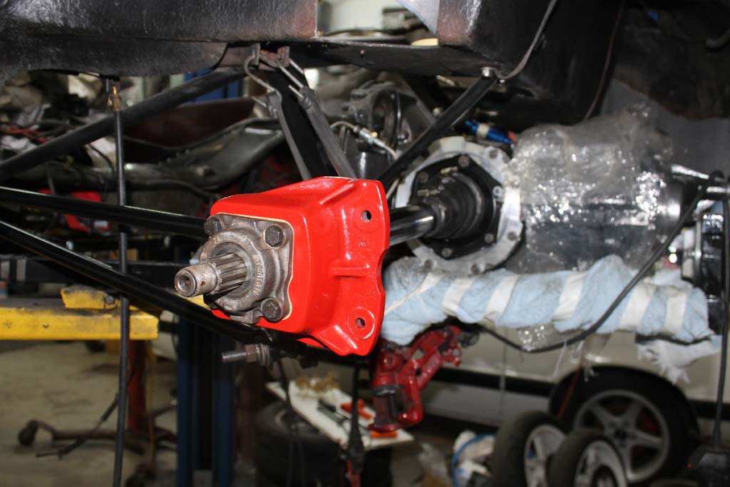 Driver side axle Assembly. Red mounts of the Porsche 914 rear calipers.