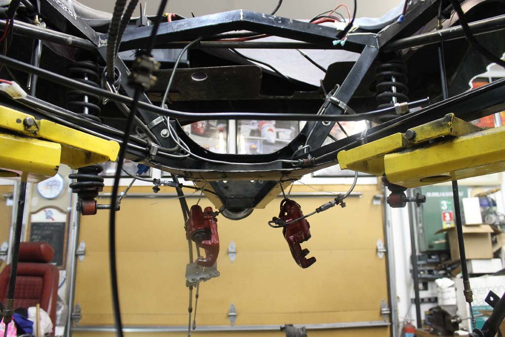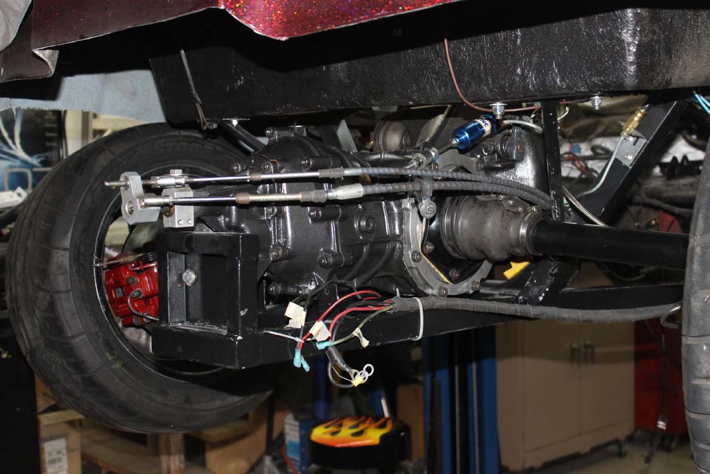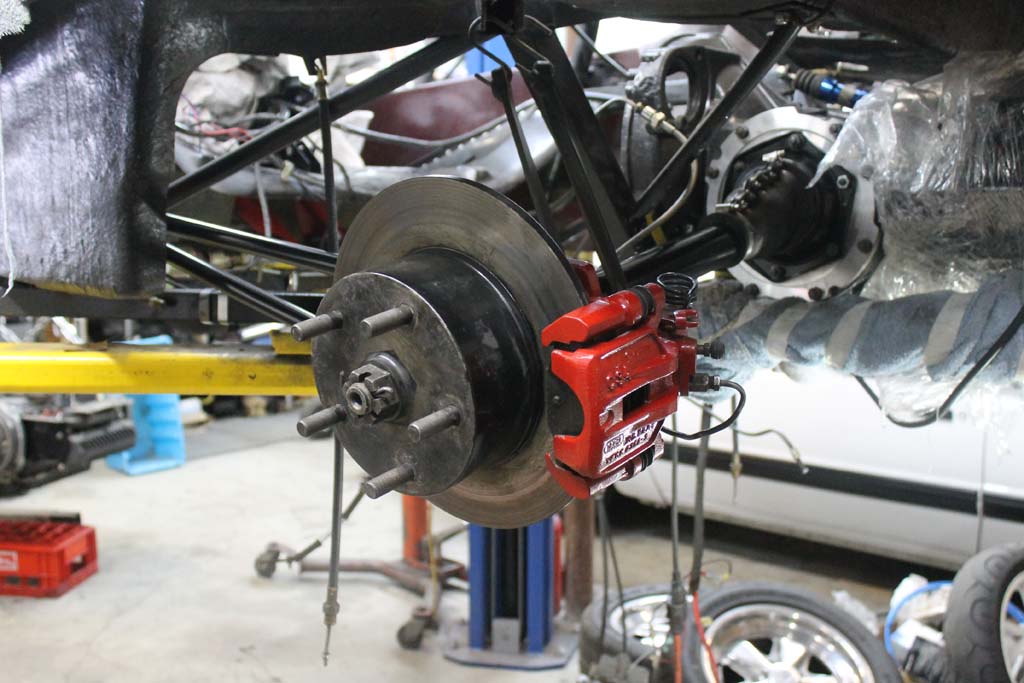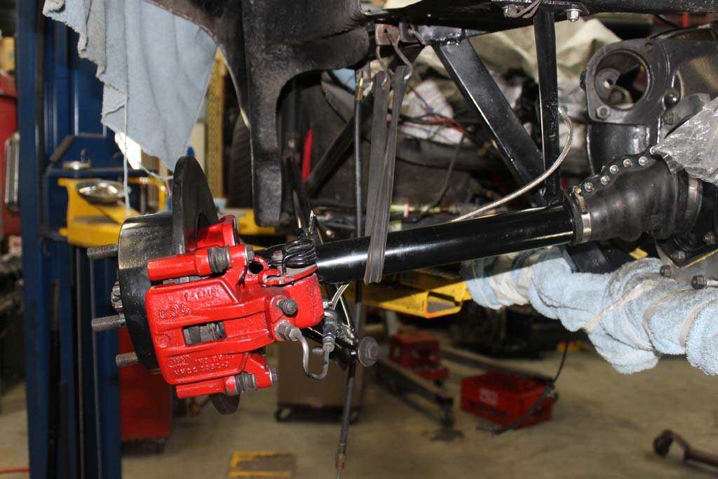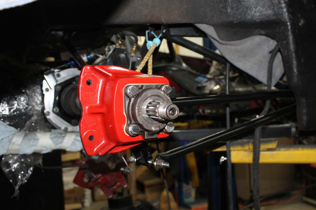Driver side axle Assembly. Red mounts of the Porsche 914 rear calipers.