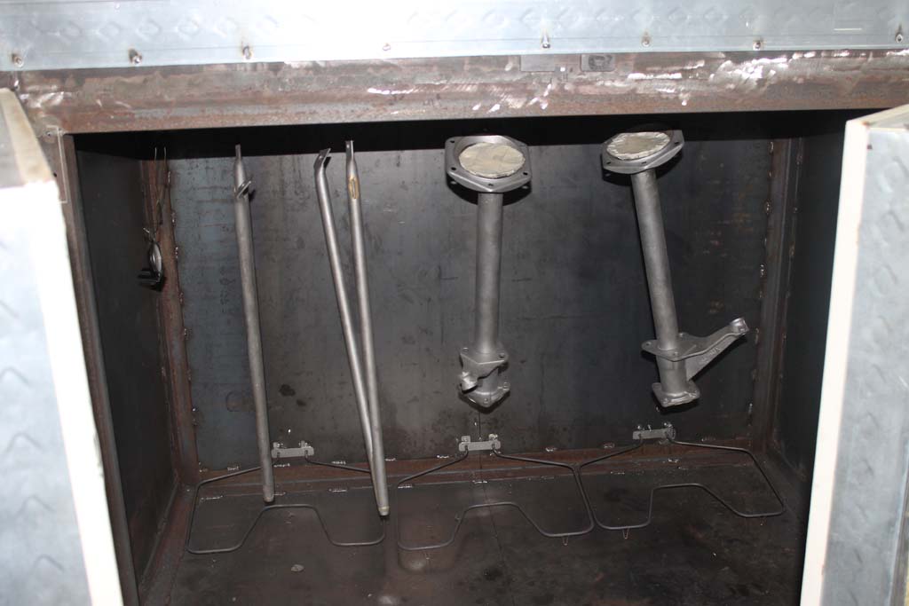 Beadlbasted parts getting up to temp in my new powder coat oven.