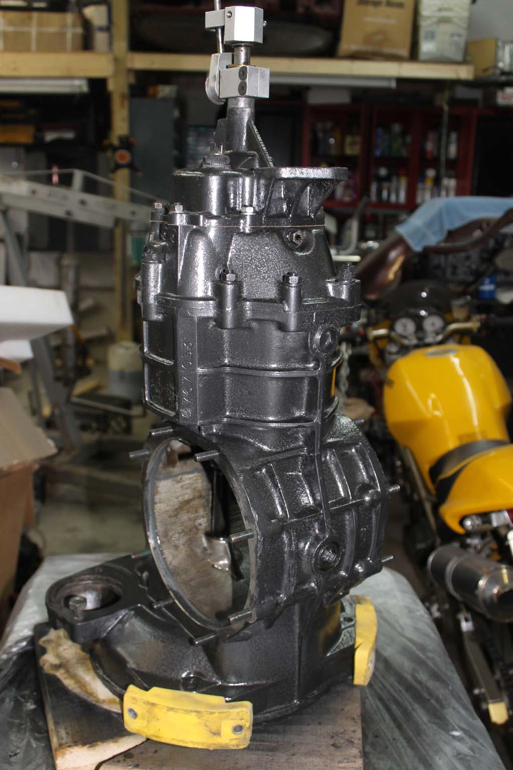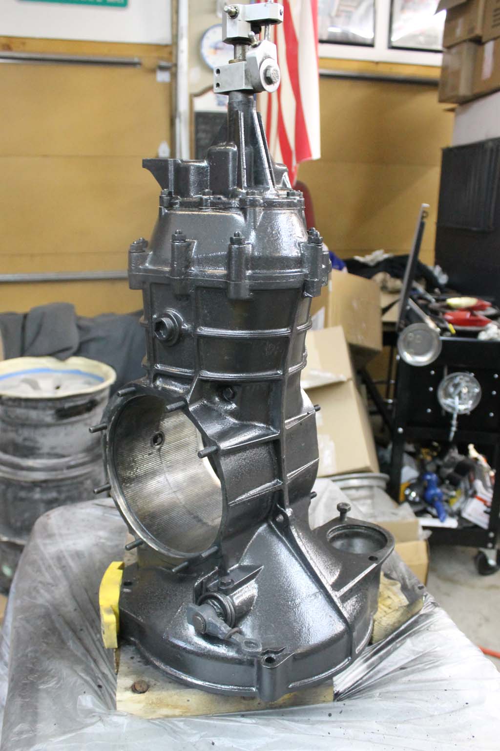 Here is the transaxle case with the diff out. Needed a good clean up. but the insides looked very good. It's a 1967 unit.