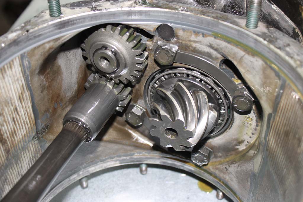 Input shaft on left, pinion gear on right. Teeth look nice, not all shiny.