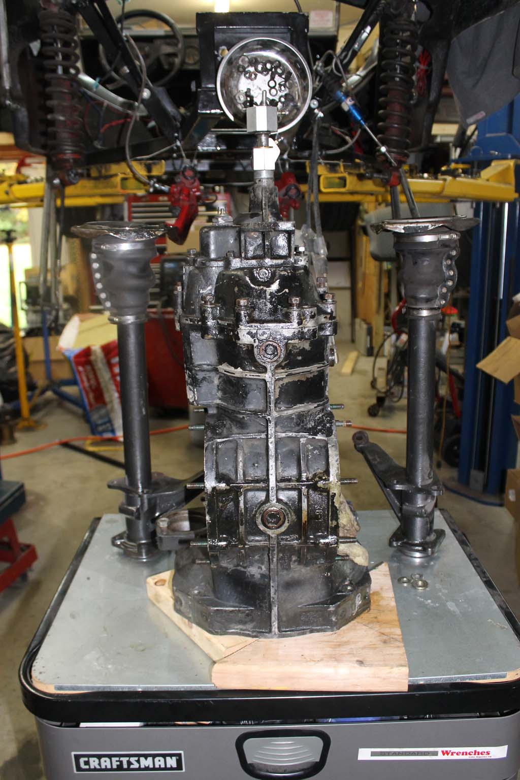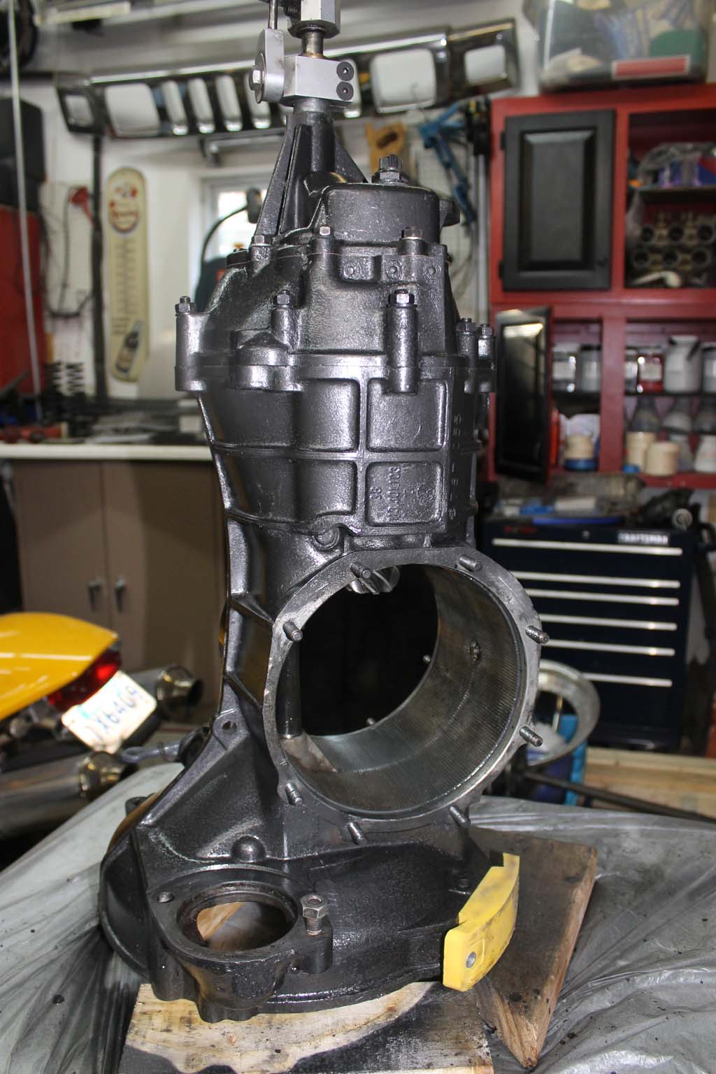 Here is the transaxle case with the diff out. Needed a good clean up. but the insides looked very good. It's a 1967 unit.