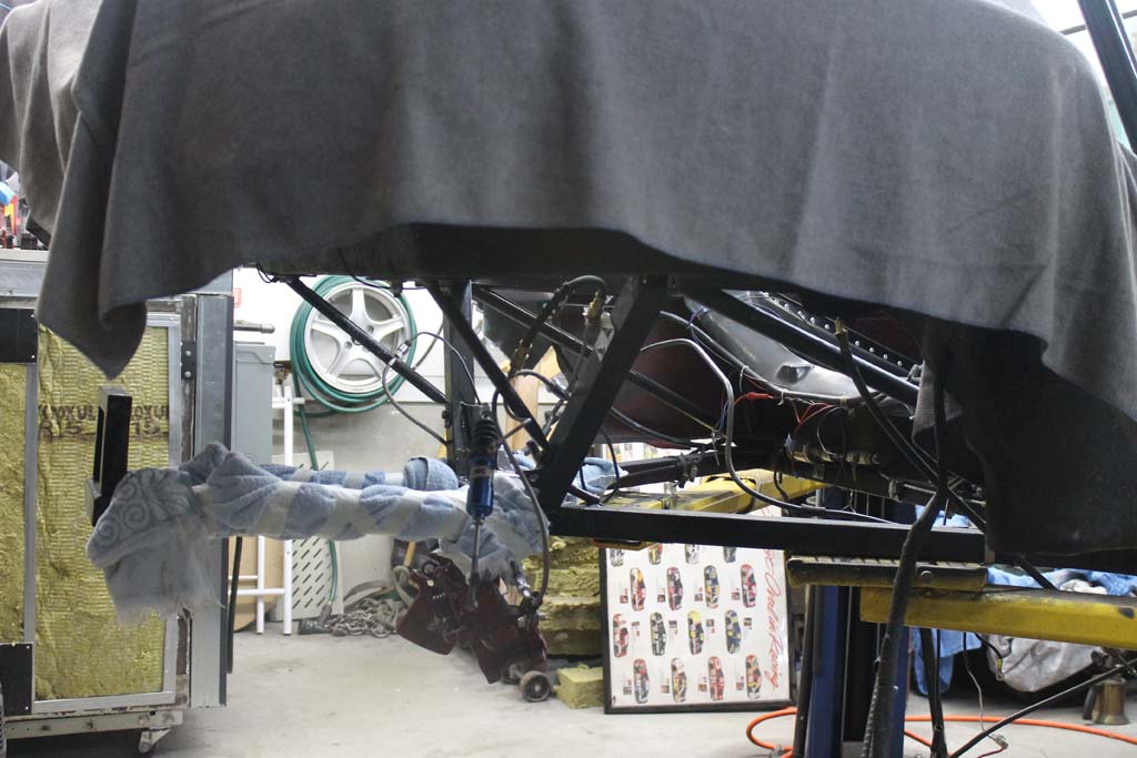 Here is the back of the car with the engine and transaxle out.