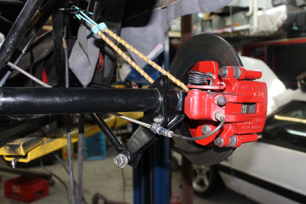 Driver side axle Assembly. Red mounts of the Porsche 914 rear calipers.
