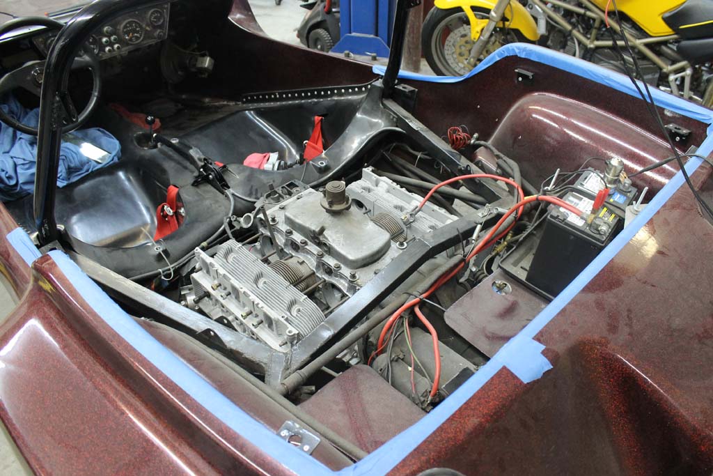 Mock up engine in the GS. You can see the machine work that was done to the heads.